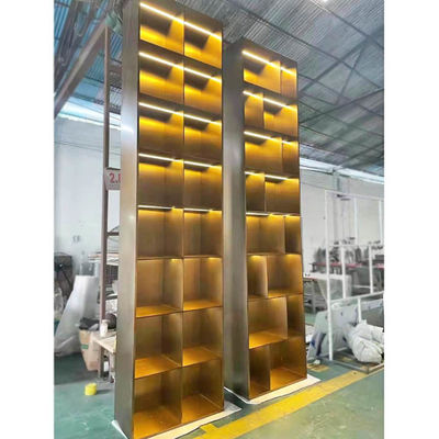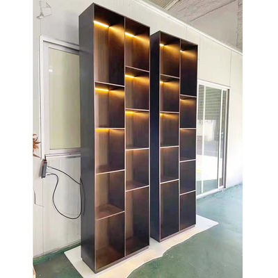 | Name | Kundenspezifisches Haarstrichschwarz-Goldfarbedelstahl-Kabinett mit LED-Licht |