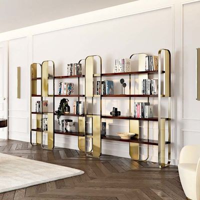Maßgeschneiderte Vitrine aus Edelstahl in der Farbe Champagnergold