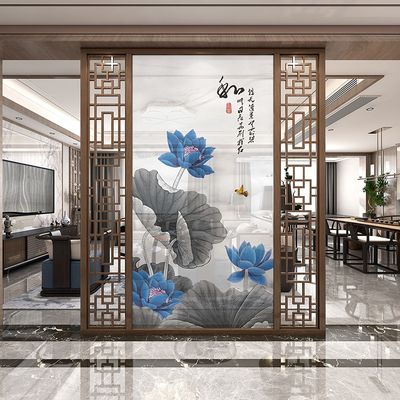 New Chinese Style Minimalistische Kunst Hotel Restaurant Eingang Dekoration Malerei Edelstahl Bildschirm Trennwand