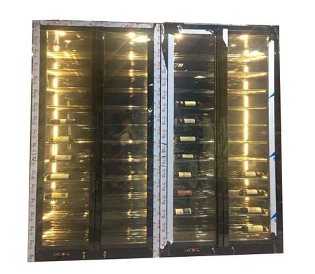 Luxuriöses Design Glastür Schwarz Gold Konstante Temperatur Edelstahl Wohnzimmer Wein Schrank