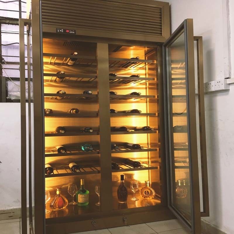 Luxus-High-End-Design-Villa Privat angepasst Rose Gold Edelstahl Wein Schrank Display Rack