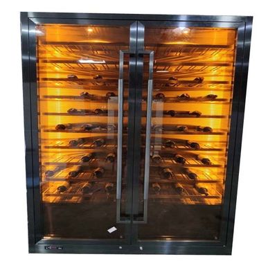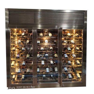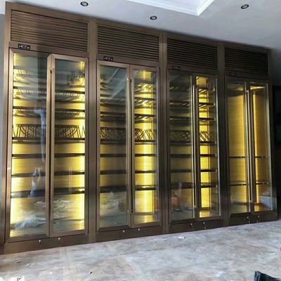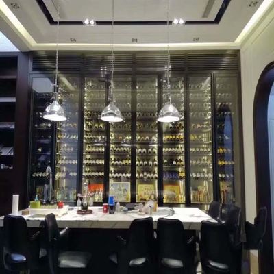 Hoteldekoration Schwarzmetallrahmen Möbel Glasbildschirm Edelstahl Schrank Weinkasse