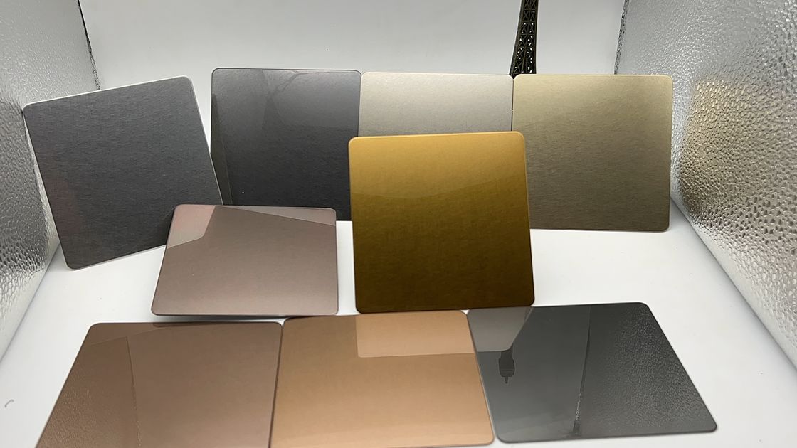 PVD-farbiges Edelstahlblech ist in einer Vielzahl von Farben erhältlich.Für die Herstellung einer Vielzahl von Farben werden Verfahren und Legierungsvariationen verwendet.