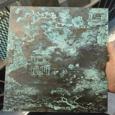 Spezifische saure Lösungen, alkalische Lösungen oder andere chemische Mittel werden zur Oberflächenbehandlung der Edelstahlplatte verwendet.Korrosionswirkung verursachen, um die Spuren von Jahren der Erosion zu simulierenEine geeignete Korrosion mit einer verdünnten Salzsäurelösung kann beispielsweise zu einer unregelmäßigen, fleckigen Korrosioneffekt führen.