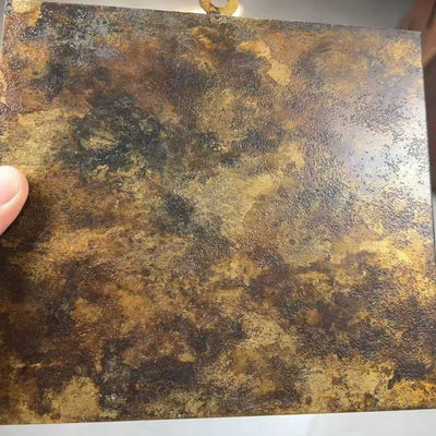 Spezifische saure Lösungen, alkalische Lösungen oder andere chemische Mittel werden zur Oberflächenbehandlung der Edelstahlplatte verwendet.Korrosionswirkung verursachen, um die Spuren von Jahren der Erosion zu simulierenEine geeignete Korrosion mit einer verdünnten Salzsäurelösung kann beispielsweise zu einer unregelmäßigen, fleckigen Korrosioneffekt führen.