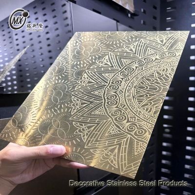 Die geätzten Muster entstehen durch selektives Auftragen einer schützenden, säurebeständigen Folie auf bestimmte Bereiche und durch Säure-Etischung der ungeschützten Bereiche.die Farbe in ein stumpfes silbernes Grau verändernDie Oberfläche kann mit Schleifen, Superspiegel oder anderen Oberflächen kontrastiert werden, um Tausende von Variationen zu erzeugen.Es wurde häufig für Dekorationen verwendet., wie z. B. Aufzugstüren, Wandplatten, Abdeckung und Ausstattung.