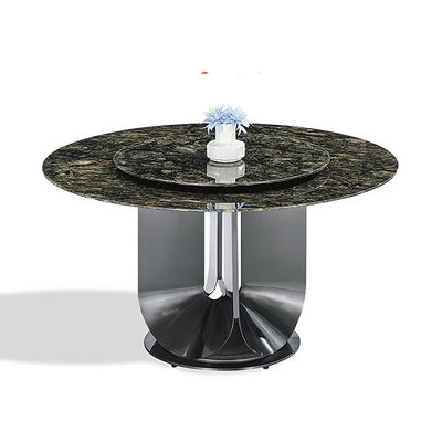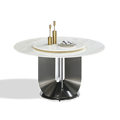 Luxus-Esstisch aus Edelstahl mit drehbarem künstlichem Stein