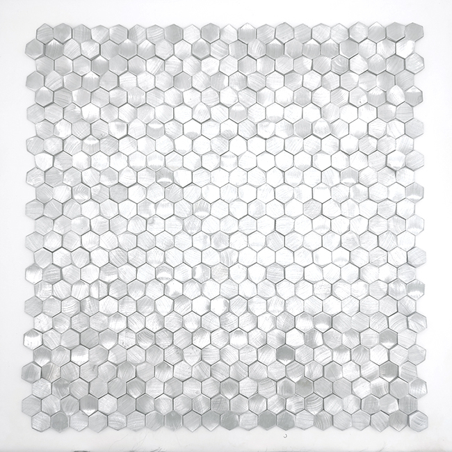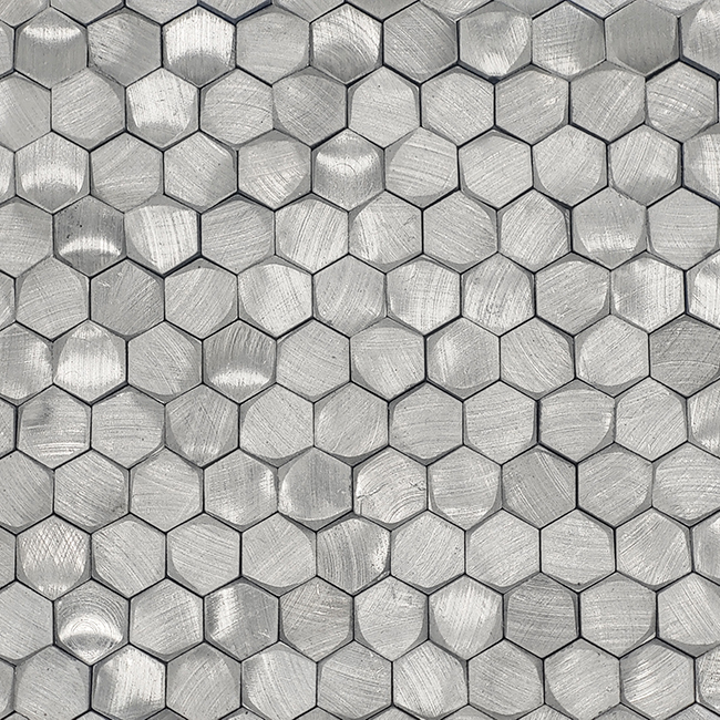 98*98MM Hexagon Hairline SLIVER Metal Mosaic Ceramic Tile