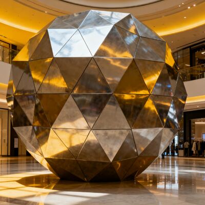Spiegelgoldfarbene Titan geformte Edelstahlskulptur